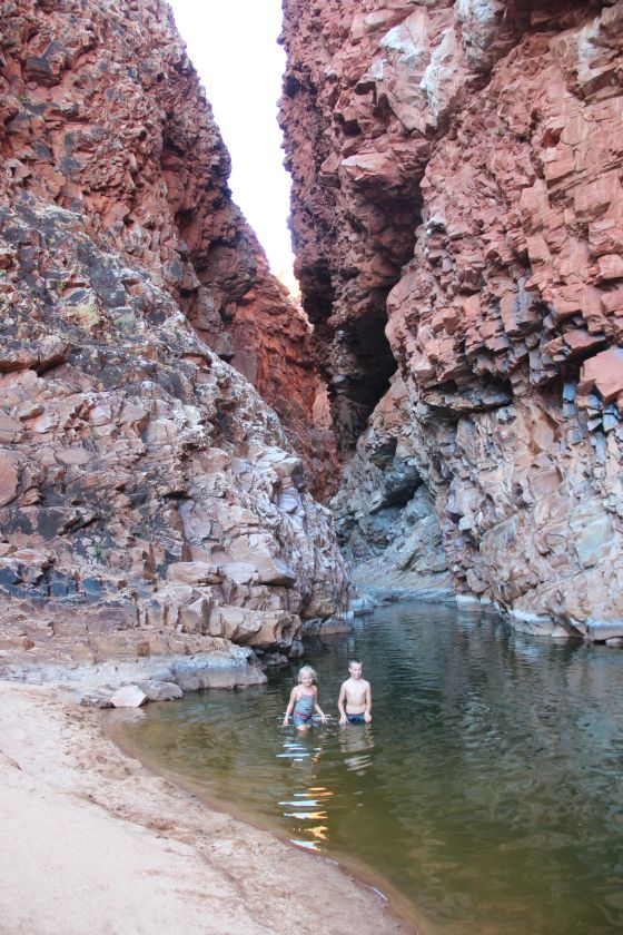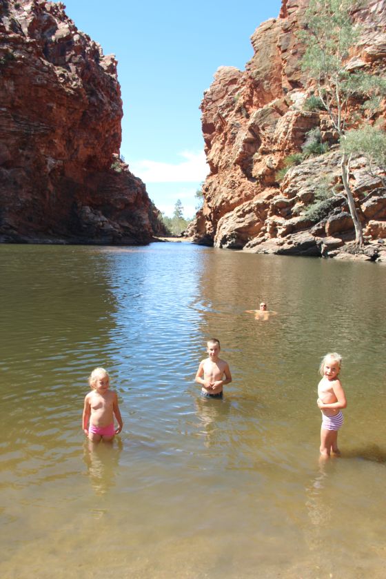Happy new year to everyone!!!Report No 3After exploring the East Macdonnell Range, we drove through Alice Springs to fill up petrol, do another big shopping and to put our 2nd report online. In this area the petrol is called 'Opal petrol' and can't be used for sniffing as it is odourless - apparently a big problem with the Aboriginals. Another problem is the alcohol. One is not allowed to drink alcohol in public areas and bottle shops only open after 2pm. After a few hours in Alice we headed to the West Macdonnell Range NP and made our first stop at Ellery Creek Waterhole. It was the first permanent waterhole and we all enjoyed a lovely swim. Who would expect a swim in the middle of the desert?