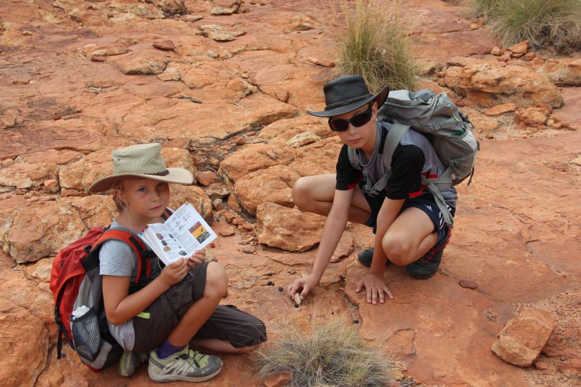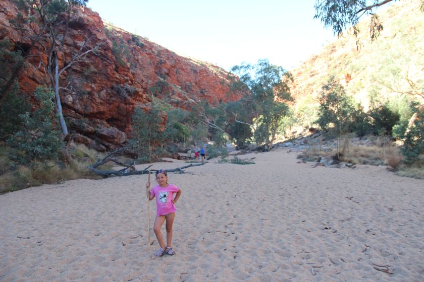 Our next challenge was another 4x4 track through the Finke Gorge NP. Although the Ranger didn't advise people to pull trailers on that track, he also didn't say we shouldn't go. So of course we tried and ... we got bogged once (but just dropped tyre pressure to get out easily) and we had a few very tight curves that were not that easy to get through with our 2 vehicles! At one spot Nati wanted to turn around and get out of it. But thanks to Alex's patience, endurance and hard work (with spade and hands-on 'building' a 'road') we made it :-)