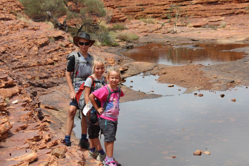 Back to bitumen, Apollo, Britz and all the tourists, we visited Kings Canyon. Surely we did the rim walk and also the kids enjoyed it very much. We were prepared for a hot day and carried lots of water ... ... ... back to the car. The temperatures were pretty low and we were even cold at times. All kids did really well - no complaints from the parents :-)