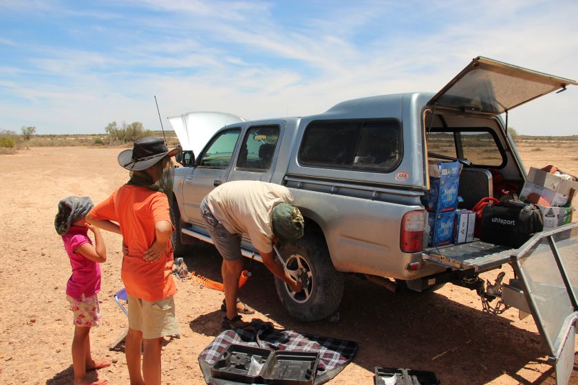 This time we used nearly all the water that we carried along (15 L). In the 4 days at Yulara we also did school, washing and shopping. Back on the road again we took the Oodnadatta track direction south. It took us two or three days to go through from Marla down to Marree. We remembered the track to be more interesting and the interesting places were scarce.