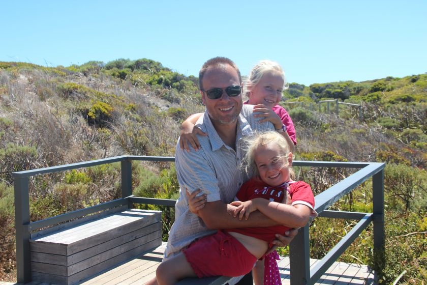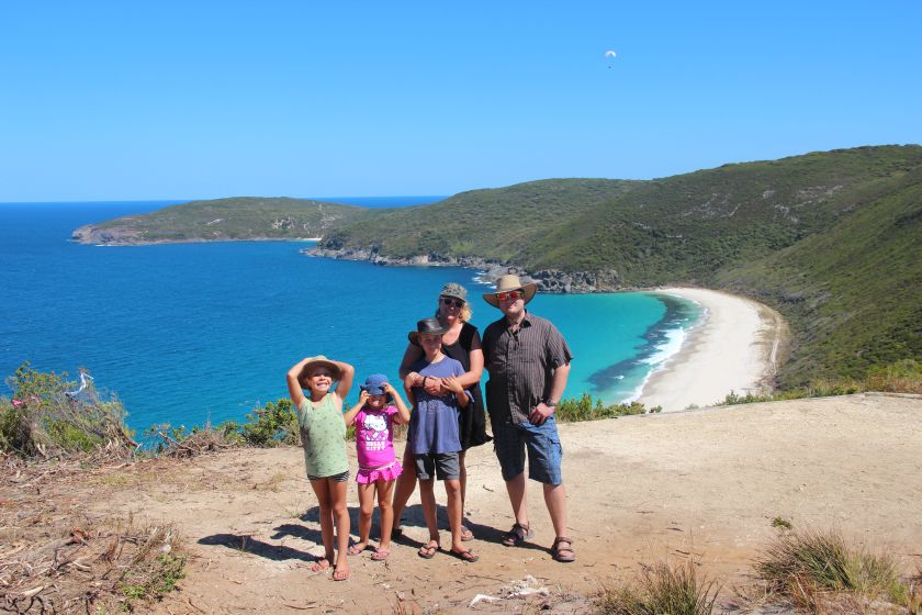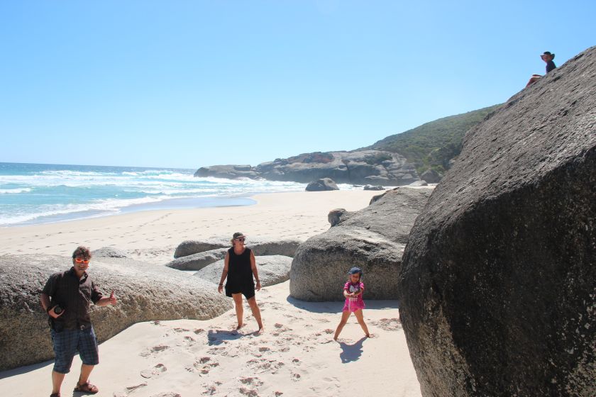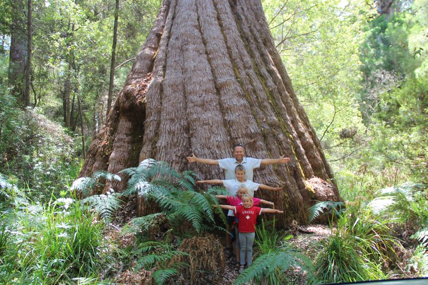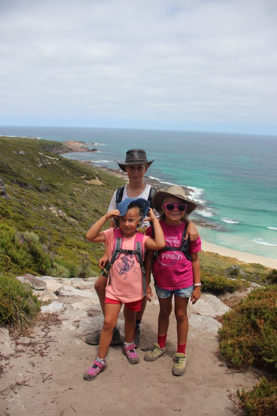 The kids loved the outdoor spa, the quad they were allowed to use, the dogs and other pets and the parents enjoyed the good food and company. We met Gustav 3 days later at Cosy Corner, just west of Albany. We spent a few days along the coast, enjoying the scenery, swimming, snorkelling, fishing, 4WD tracks, ..... We stayed at Parry Beach and then crossed through the wonderful Karri forests, doing the impressive tree-top walk (40m up in the tree tops) and climbing some fire lookout trees (only Luca).