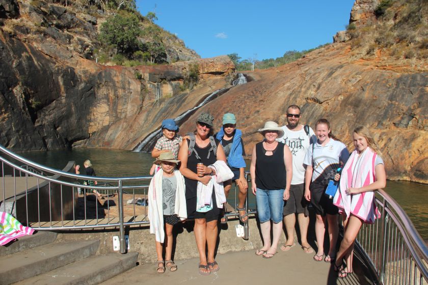 They only feed 5 dolphins (always the same ones) and only a maximum of 1.5 kg of fish a day. They eat 12 kg of fish a day, so they still have to hunt for themselves. It is quite touristy, but we still enjoyed it a lot and the kids all got a chance to feed a wild dolphin each! Not something one gets to do very often! We also enjoyed the Francois Peron NP, where we did a 4WD track to beautiful cliffs. Looking down from them we could see sharks, manta rays and a huge sea turtle. Very impressive.