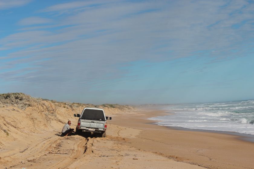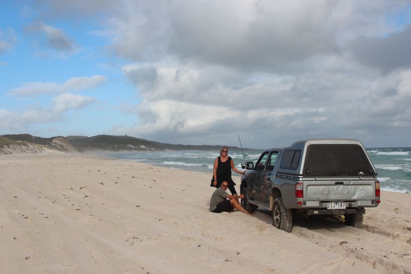 Next stop was Adelaide where we stayed some days with Gereon and Anneliese once more. Wondering when they get sick of having us :-) But they didn't. After a good time with good friends in Adelaide we went on to the Coorong NP where we stayed for 4 nights (different campsites). Here we enjoyed watching pelicans, sand-dune-driving, beach-driving, hiking and very strong & big waves at the sea.
