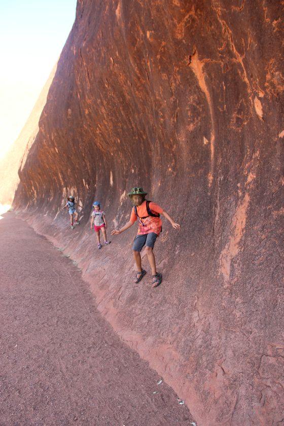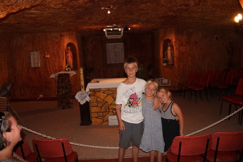 After 2 days we were already at Uluru where we enjoyed the pool and where we did the Ayers Rock Base Walk. Which means nothing else than walking around Uluru :-) We all managed well and did the 10.6 km with only some blisters and little complaining :-) 3 nights at Yulara (the resort at Uluru) were enough and we drove on to Coober Pedy where we wanted the kids to see the Opal-mining and the under-ground-living. Underground hotels, restaurants, museums, churches and an underground campsite. - Incredible!